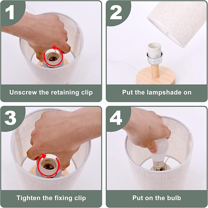 - E26 universal base, you can additionally equip the ACHUAI wooden desk lamp with other color bulbs you like, max 60 watts.