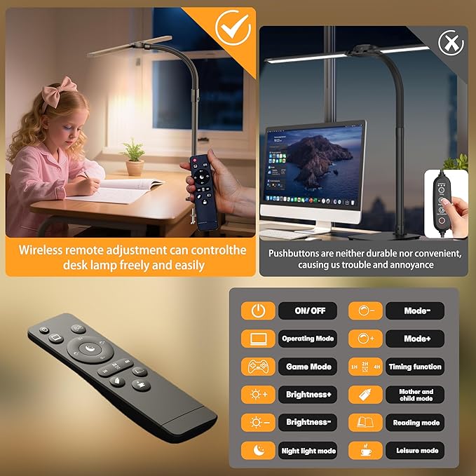 - 【Super Wide, Large and Bright】: This 24W LED desk lamp has a double head design that allows you to adjust the angle of the light bar. It can extend to 31.5 inches and fully illuminates the table. Suitable for multi-monitor workstation, home office, large desk, study, architect, computer, drawing, sewing, crafts, painting, reading, gaming, piano. Height up to 32.7 inches.