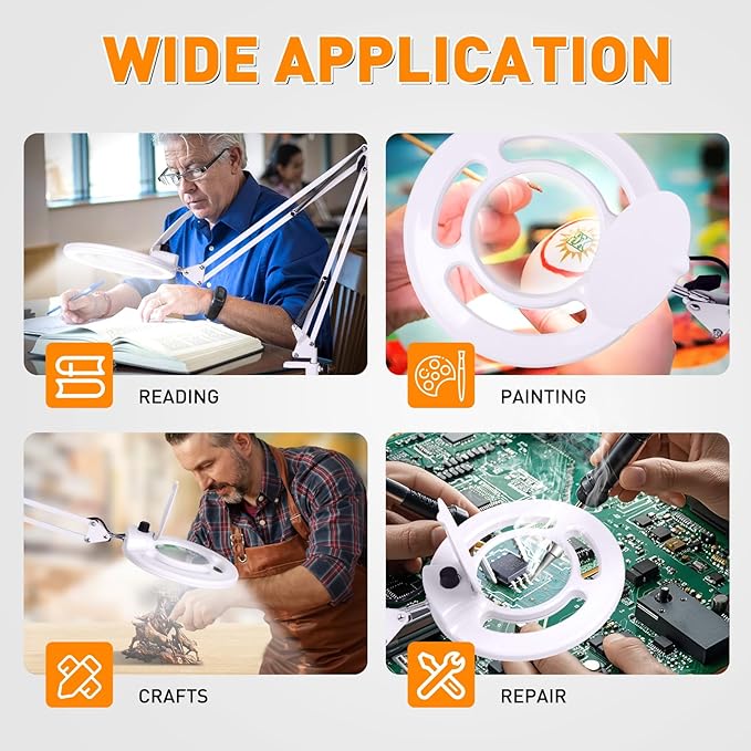 - Strong Metal Clamp: This magnifying glass for close work is equipped with a sturdy metal clamp that securely attaches to your workbench or any surface up to 2.3 inches thick. Rubber & sponge protection will not desktop damage you and provides stability, allowing you to enjoy hands-free convenience while you work, leaving both hands available for precision tasks or holding other tools