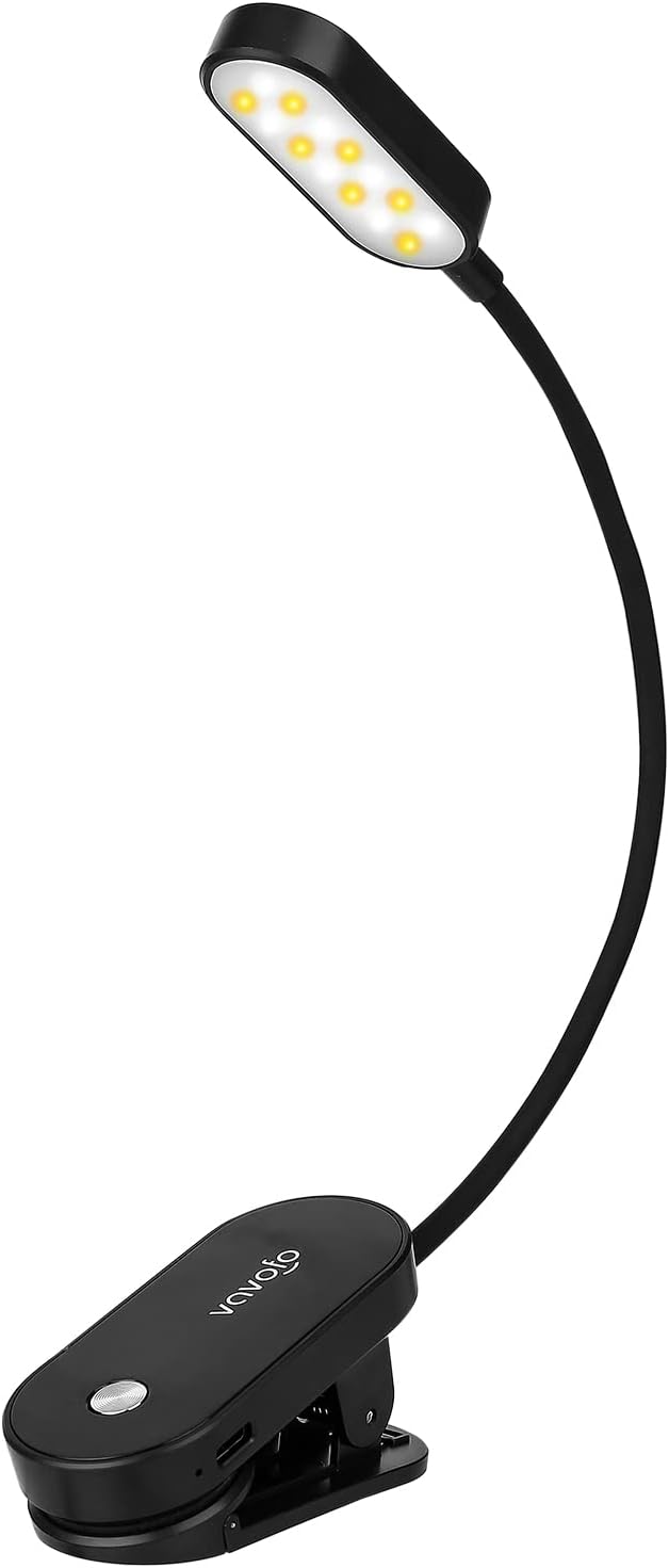 - 【360°Flexible Goose Neck & Non-slip Clip Design】- The Vavofo's reading light has the 360 degree adjustable neck with multi use non-slip clip which allows you to position the light exactly where you need it, creating the perfect private reading space for you while reading in bed, in college dorm, or on a plane, train, or bus. It can also be placed on the tabletop, work surface, etc. The book light is lightweight, portable, & travelling-friendly.