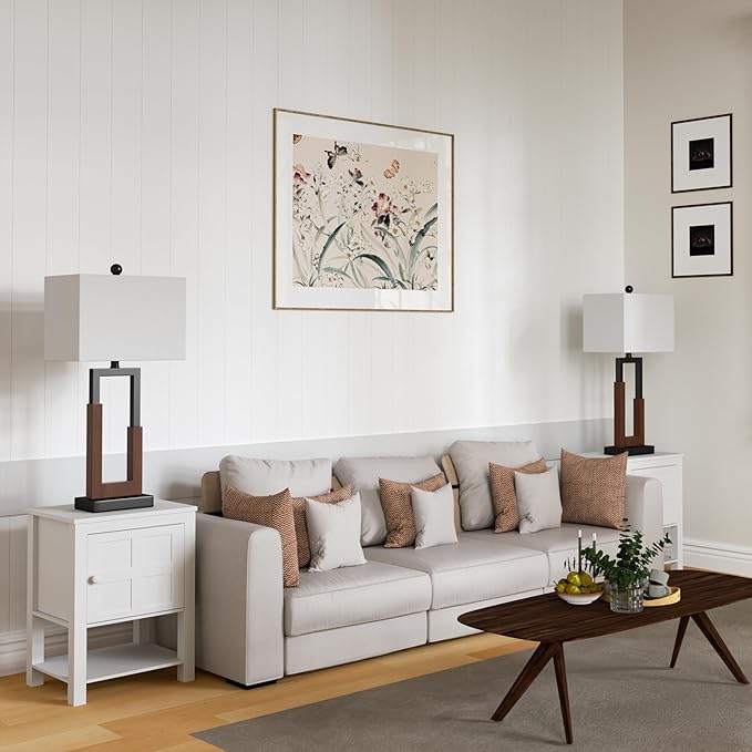 - 【Minimalist Design】Refusing to choose between modern fashion and convenient function, Maxax 30'' table lamps set crafted of metal and wood, this statement piece features a clean-lined geometric base in black and brown finish for contemporary flair. With both a built-in USB port and a keeping up with the time's newest built-in Type-C port, charging at your fingertips is accompanied by the ultimate inconvenience. Perfect for a living room, bedroom, family room, den, library