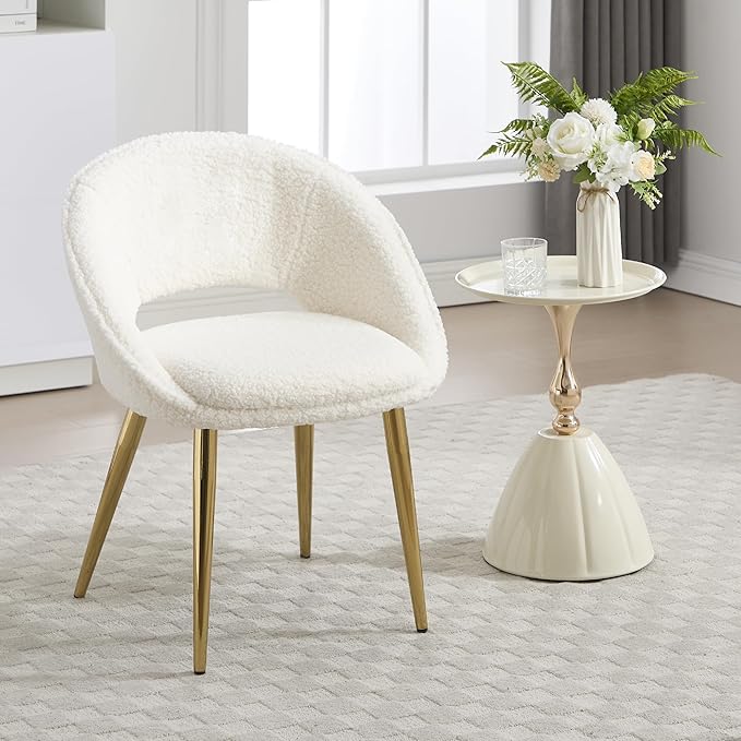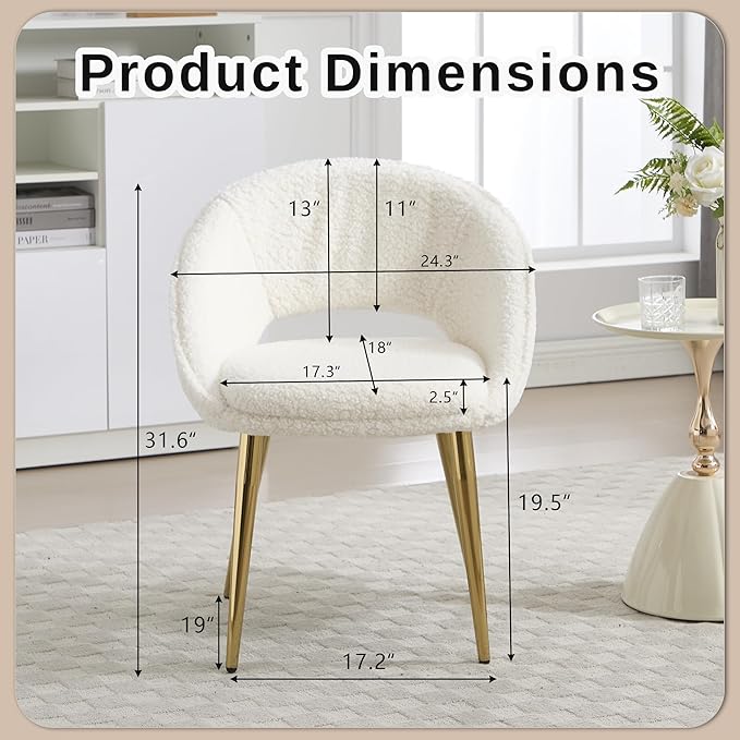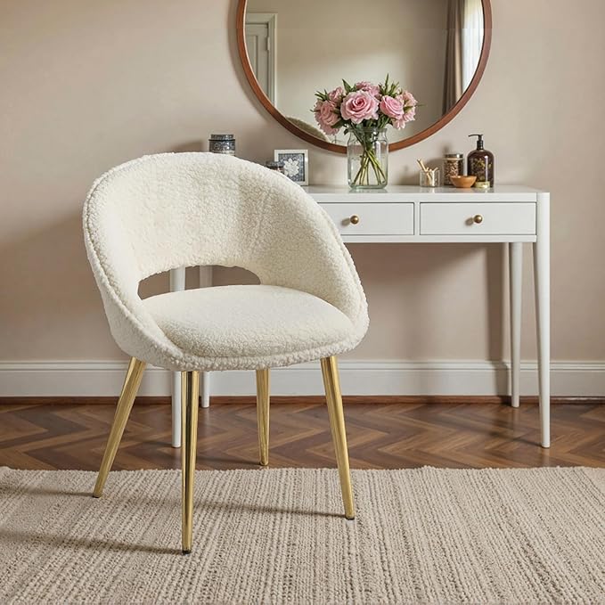 - 【Elegant Faux Fur Chair】This medium back fluffy dressing chair is made of comfortable short faux fur. It is not only beautiful and fashionable in appearance, but also comfortable to sit on. It is a lovely dressing chair.