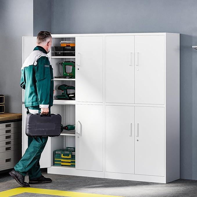 Letaya Metal Storage Cabinet with Lock Door, Adjustable Shelf Steel Cabinets for Office, Home,Pantry,Kitchen,Garage Utility Cabinet (4 Door-White)