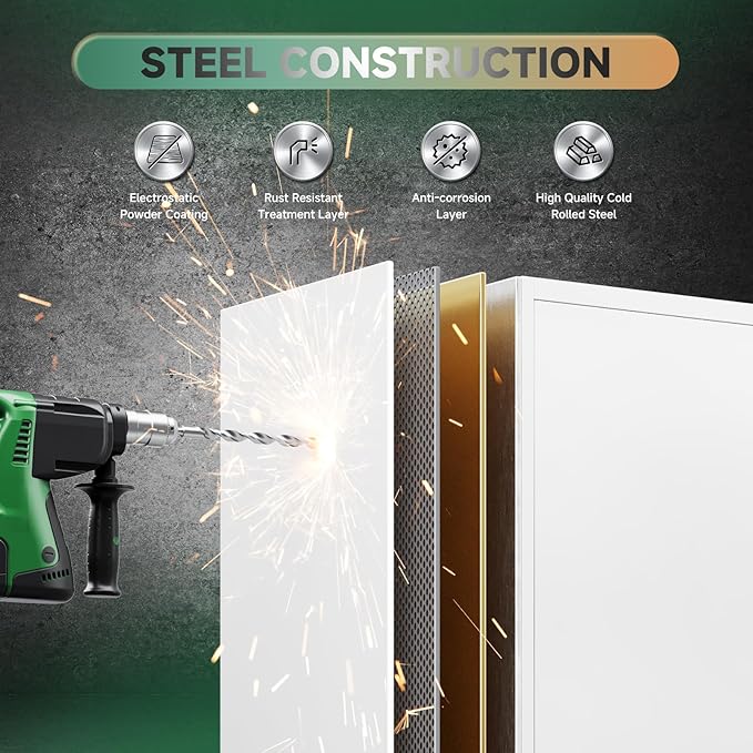 - Professional Design: Metal cabinet adopts an upgraded version of the three-point lock system, and the steel rods are thickened to provide higher security for your valuables and important items;anti-collision reinforcements, keeping quiet while protecting when you opening or closing the door;Adjustable feet can ensure the balance of the metal cabinet in various environments;pre-holes on the back, enable to be mounted to the wall