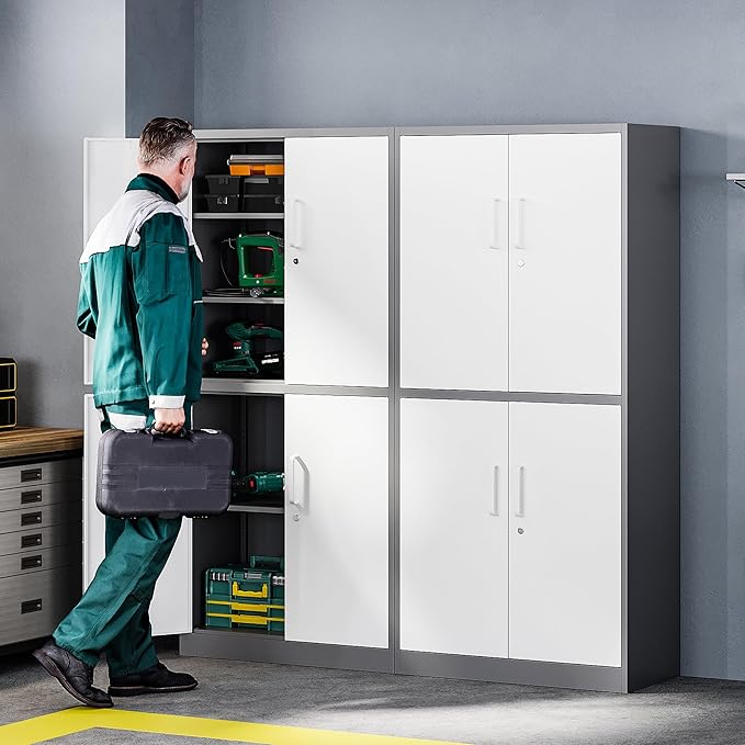 Letaya Metal Storage Cabinet with Lock Door, Adjustable Shelf Steel Cabinets for Office, Home,Pantry,Kitchen,Garage Utility Cabinet (4 Door-White&Gray)