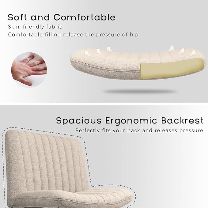 PUKAMI Criss Cross Chair,Comfy Cross Legged Office Desk Chair No Wheels,Modern Fabric Swivel Adjustable Height Mid Back Wide Seat for Home Office Computer Makeup Vanity Task(Beige)