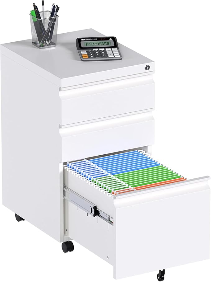- 【File Cabinet with Lock】The filing cabinet has 1 lock and 2 keys to lock 3 drawers to keep your files and belongings safe. The drawers have built-in pencil trays to organize your office supplies.