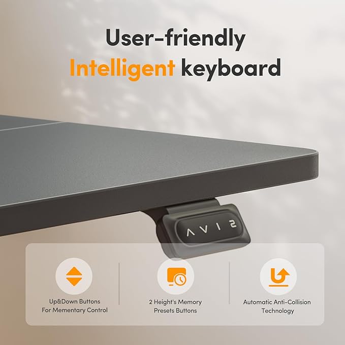 - 【Anti-Collision Technology】 The standing desk is protected from bumps and scratches with a sensor for detecting obstacles in the path of desk's movement.