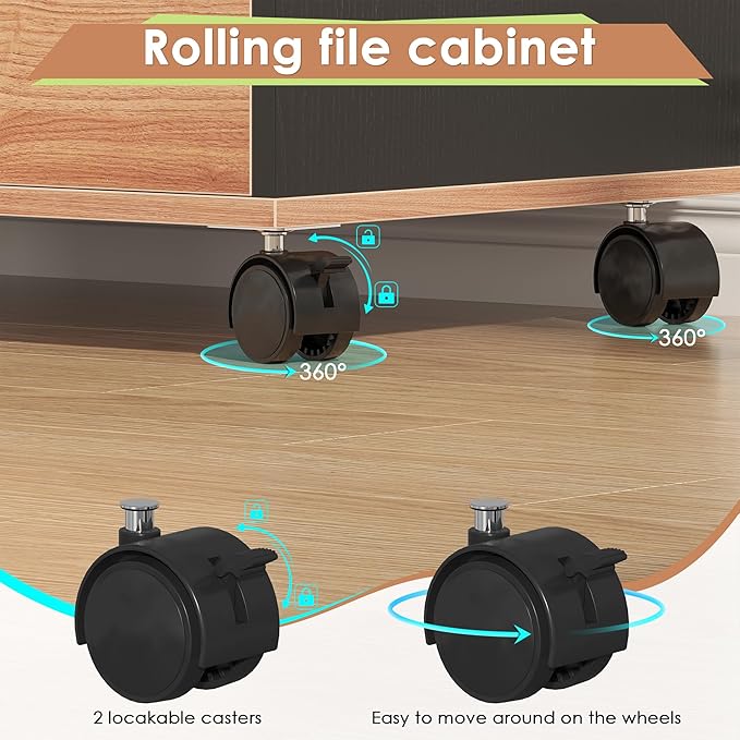 - 【Lockable & Movable】Both drawers of this filing cabinets for home office are equipped with locks so you can important documents. Plus, this lateral file cabinet is equipped with 2 lockable casters, which means you can move it wherever you like.