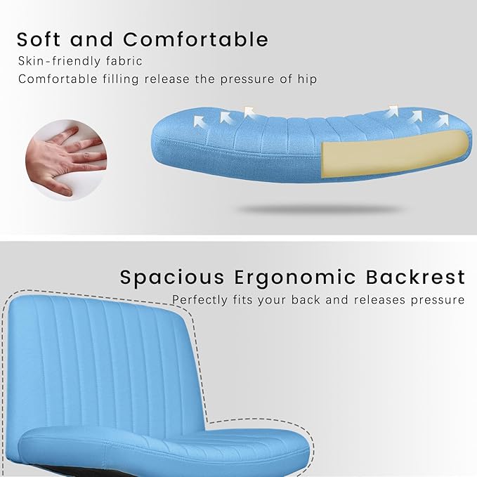 PUKAMI Criss Cross Chair,Armless Cross Legged Office Desk Chair No Wheels,Fabric Padded Modern Swivel Height Adjustable Mid Back Wide Seat Computer Task Vanity Chair for Home Office (Light Blue)