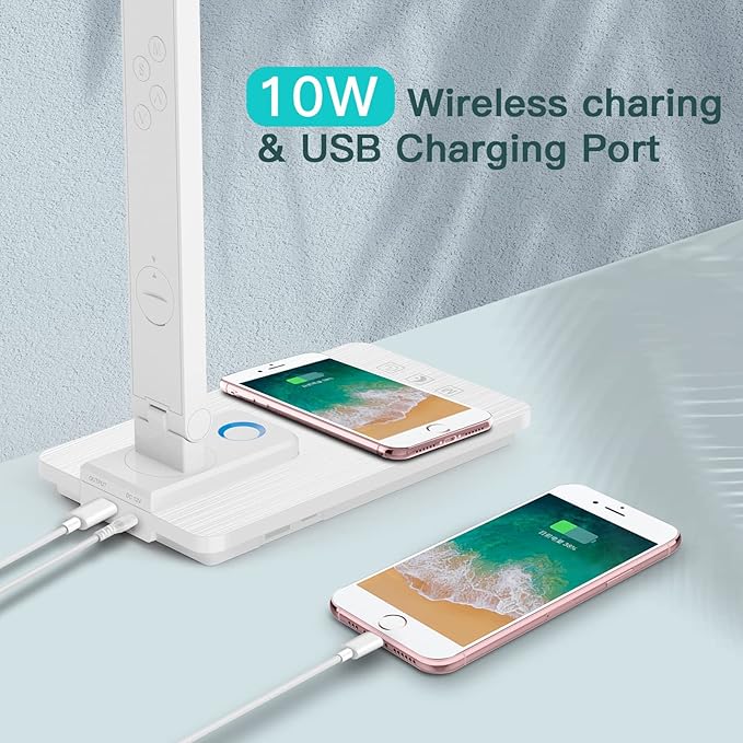 LED Desk Lamp with Wireless Charger: Desk Lamps for Home Office Bedroom, 5 Color Modes & Brightness Dimmable, 2 Night Light