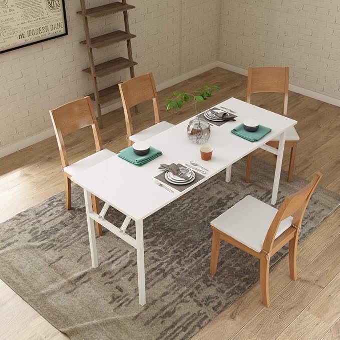 - HIGH QUALITY - This modern sturdy folding writing table frame is built with high-strength, thick tubing steel that is powder coated for a perfect finish. And the fold up desk top surface is 3/4 inch thick, high resistance on scratch & friction.Net weight about 38.5lbs, Gross weight about 41.9lbs.