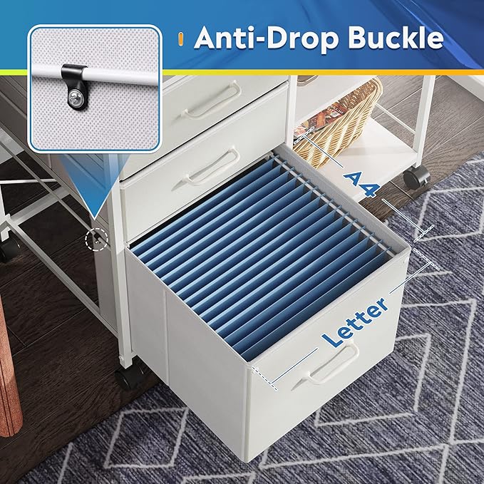 - Easy to Move: Rolling on 4 wheels, including 2 lockable casters, this mobile file cabinet can fix or move around your home office freely. Unique fabric drawer design makes it only weigh 22 lbs. and light to move.