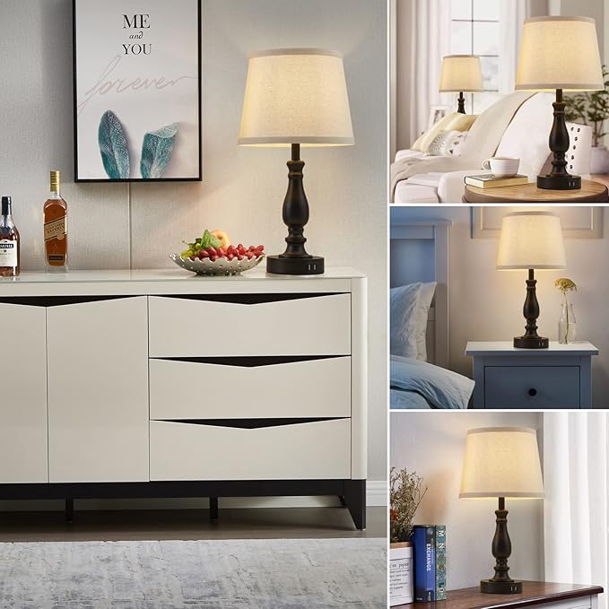 - Widely Application: The bedroom lamps for nightstand set of 2 have white fabric shades and black metal base, minimalist style makes it a great decor for your space. You can place these ideal decorative lamps in various places, such as dorm, offices, nursery, bedroom, living room, nightstand, sofa tables and etc.. Because of the stylish appearance and multiple functions, the usb lamp sets are also a great gift choice for your friends and family on the special occasions.