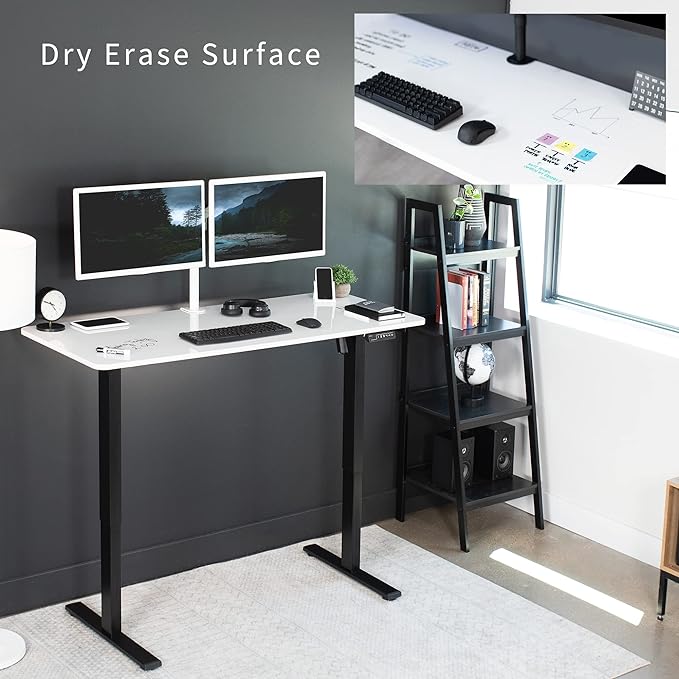 VIVO Electric Dry Erase 60 x 24 in Standing Desk, Memory Height Adjustment, 1B Series, Whiteboard Top Black Frame, DESK-KIT-1B6WE