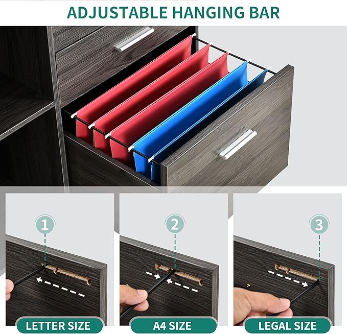 - Organized & Safe: The bottom file drawer with hanging bars stores your A4, letter and legal sized files and keeps them organized and accessible. And the top drawer with a lock keeps your personal belongings private