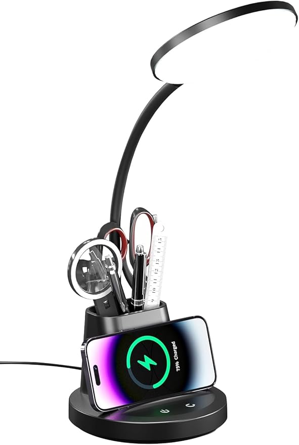 - Qi Wireless Charging Stand: This desk lamp includes a wireless charging station, just simply place your phone on the charging dock of the lamp base. Take note that this LED desk lamp with 10W wireless charger is compatible Qi-enabled wireless supported phone devices including the iPhone and android.