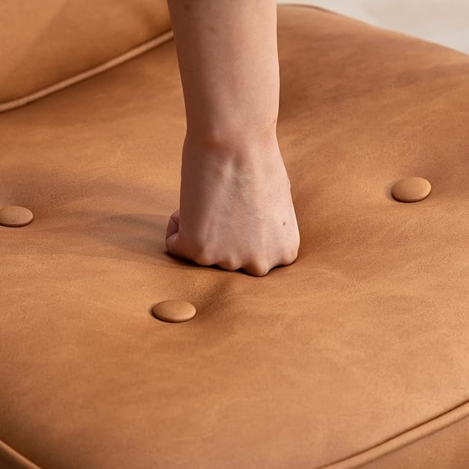 LukeAlon Adjustable Pu Leather Office Chair, Comfy 360° Swivel Task Chair with Armrest Modern Thickened Seat Desk Chair Tiltable Computer Chair with Button Tufted for Home Office, Light Brown