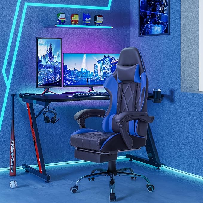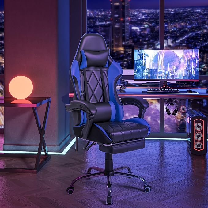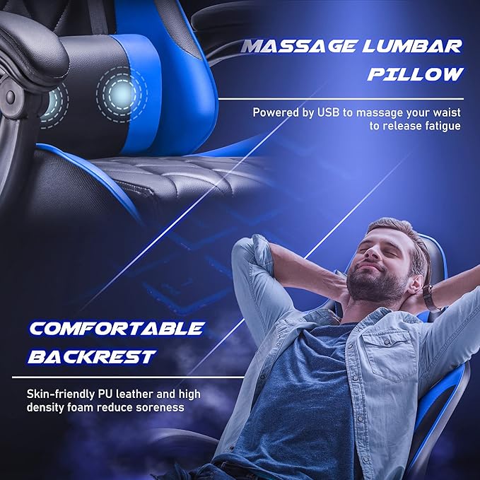 Homall Gaming Chair, Computer Chair with Footrest and Massage Lumbar Support, Ergonomic High Back Video Game Chair with Swivel Seat and Headrest (Blue)