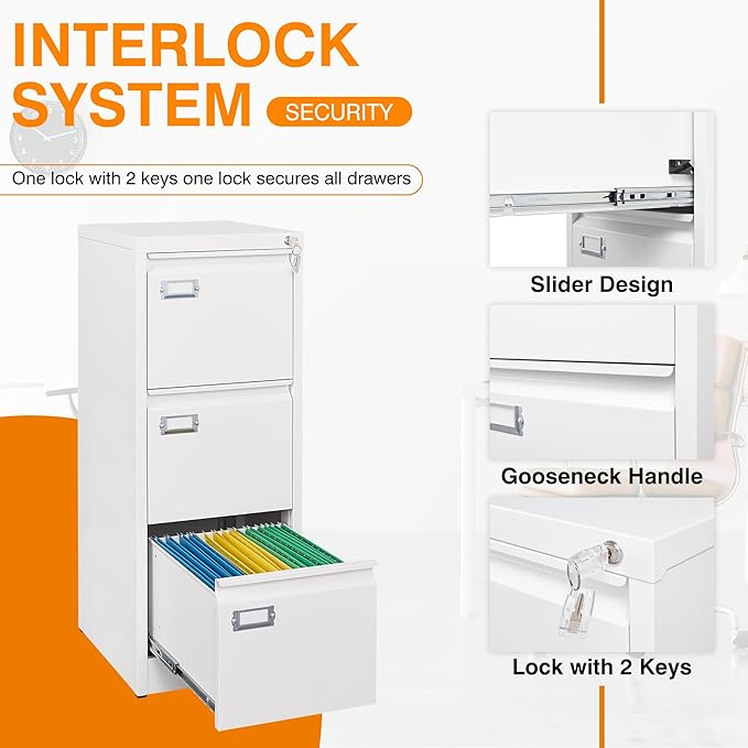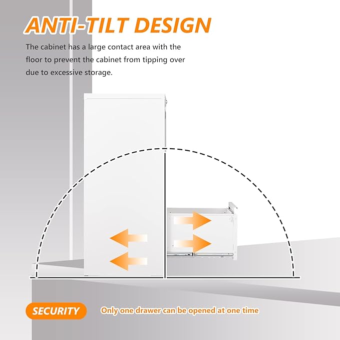 - 💖【Metal Vertical File Storage Cabinet】This file cabinet can lock 3 drawers at the same time with one lock, and is equipped with 2 keys. With an anti-tilting mechanism, when one drawer is opened, the interlocking system prevents the other drawer from opening, thereby preventing tipping and protecting your safety.