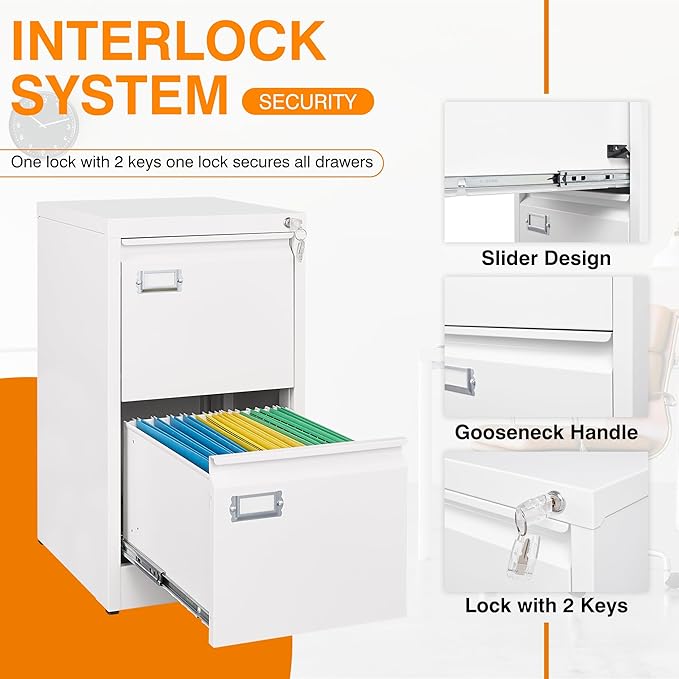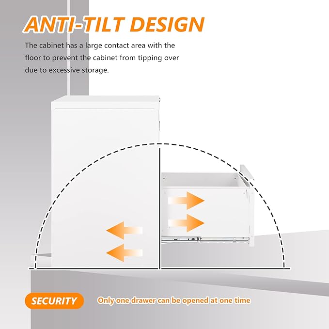 - 💖【Metal Vertical File Storage Cabinet】This file cabinet can lock 2 drawers at the same time with one lock, and is equipped with 2 keys. With an anti-tilting mechanism, when one drawer is opened, the interlocking system prevents the other drawer from opening, thereby preventing tipping and protecting your safety.