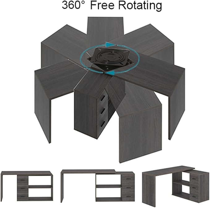 - 【360°Free Rotating Design】: This grey L Shaped Desk with Drawers and shelves is designed with 360° free rotating function, which allows you to change into different shapes to customize your computer desk. 0°overalapped perfect for small space, 90° or 270° L shaped perfect for corner space and 180° extended perfect for large space.