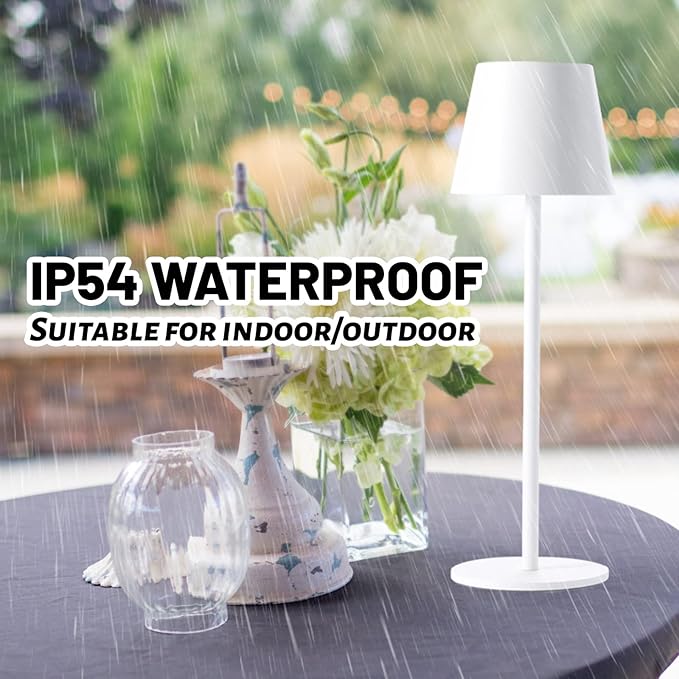- 【IP54 Waterproof】 The head of this LED table lamp is a fully enclosed structure, and the lampshade can well resist water penetration. After rigorous testing, the outdoor table lamp is guaranteed to work perfectly even in rainy weather. It can be placed in the yard and celebrated with drinks with friends at night, perfect for camping, hiking, and fishing.