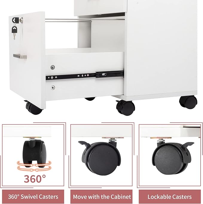 Karl home Wooden File Cabinet, 3 Drawer Vertical File Cabinets with 3 Lock,Printer Stand Mobile Storage Cabinet,Filing Storage Drawer for Home,Office,White(15.75" L x 15.75" W x 26.1" H)