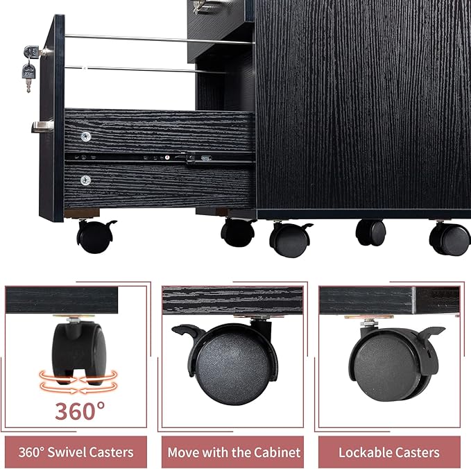 - 【Easy to Move】It comes with 5 wheels, including 2 front casters with brakes and a center caster to prevent tipping, making it easy to move the cabinet to your work space.