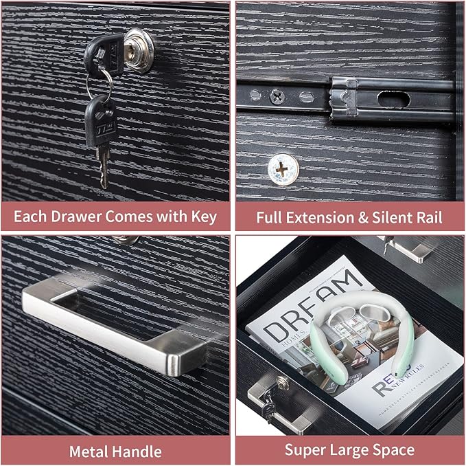 - 【Sturdy and Durable】This cabinet is made of durable MDF board, which has strong load-bearing capacity and resists scratches and water damage for long-term use. Assembly is easy with clear instructions and required accessories.File Cabinet is make from FSC-Certified wood.