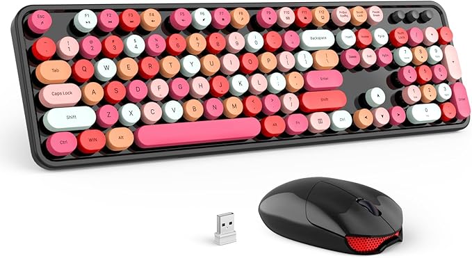 - 【Black Colorful Wireless Keyboard and Mouse Combo】2022 is the most popular color, to attract more people's eyes, give you a different Typing feel, enjoy a different keyboard experience, create a colorful desk, and be a pleasant mood for you!
