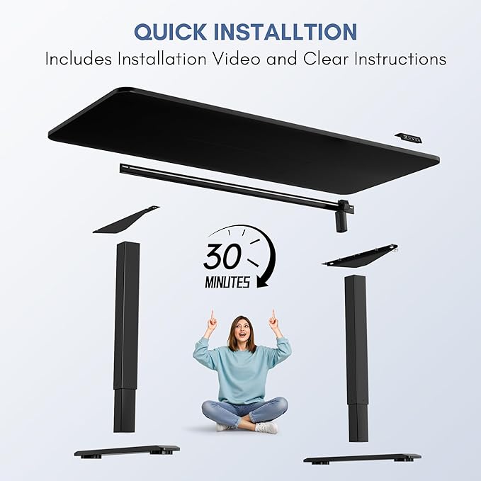 - 【Durable Quiet Motor】The motor is made of good quality and each has been tested more than ten inspection processes before pre-assembling to the desk. You can adjust the height between 28.7~46.4 inches at a speed of 1"/second with low noise (under 50DB). This standing desk uses an advanced motor with longer service life, each motor can be used more than 10,000 times and durable enough of 2 years daily use.