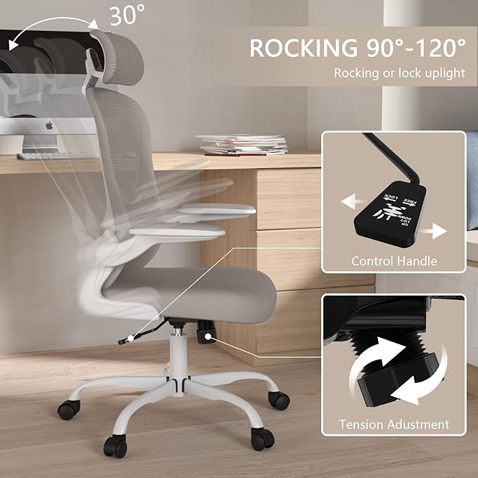 Office Chair, High Back Ergonomic Desk Chair, Breathable Mesh Desk Chair with Adjustable Lumbar Support and Headrest, Swivel Task Chair with flip-up Armrests, Executive Chair for Home Office
