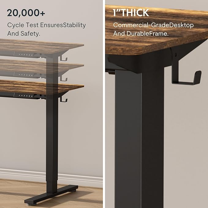 - SMOOTH ELECTRIC HEIGHT ADJUSTMENT: Say goodbye to manual height adjustments. This desk is equipped with an electric lift system that allows you to easily adjust the desk's height from 28.1" to 45.7"(without 1" thickness of table top included). Even better, the motor operates quietly with noise levels below 50 dB, ensuring a peaceful working environment.