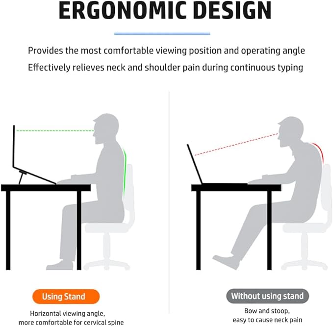 - FAST HEAT DISSPATION:The laptop stand can raise the height of the laptop without blocking the air outlet, it increases air circulation to prevent the laptop from overheating