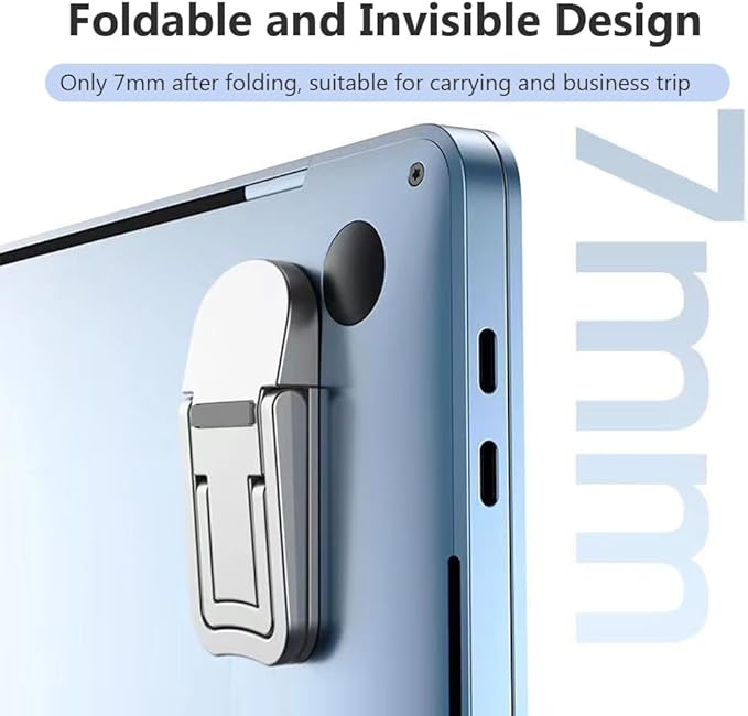 - FOLDABLE AND INVISIBLE DESIGN: The foldable laptop stand only have 7 mm (0.28 inches) when folded, easy to put into your notebook bag, portable when going out to office or business trip