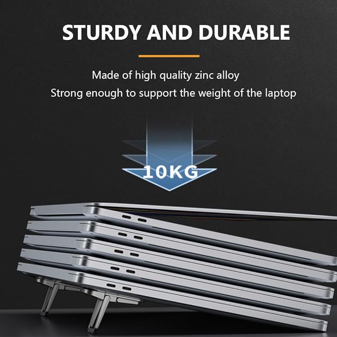- ZINC ALLOY MATERIAL: The laptop stand is made of zinc alloy, which is strong enough to support the weight of the laptop