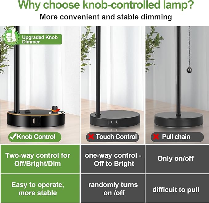 - ❤ Dual Fast USB Charging Ports: Our farmhouse bedside lamp with USB port features upgraded dual USB charging ports (5V/2.1A), enabling convenient and rapid simultaneous charging of two electronic devices. Whether the lamp is on or off, you can effortlessly charge your mobile phones, iPads, Kindles, headsets, diffusers, speakers, and other electronics with ease.