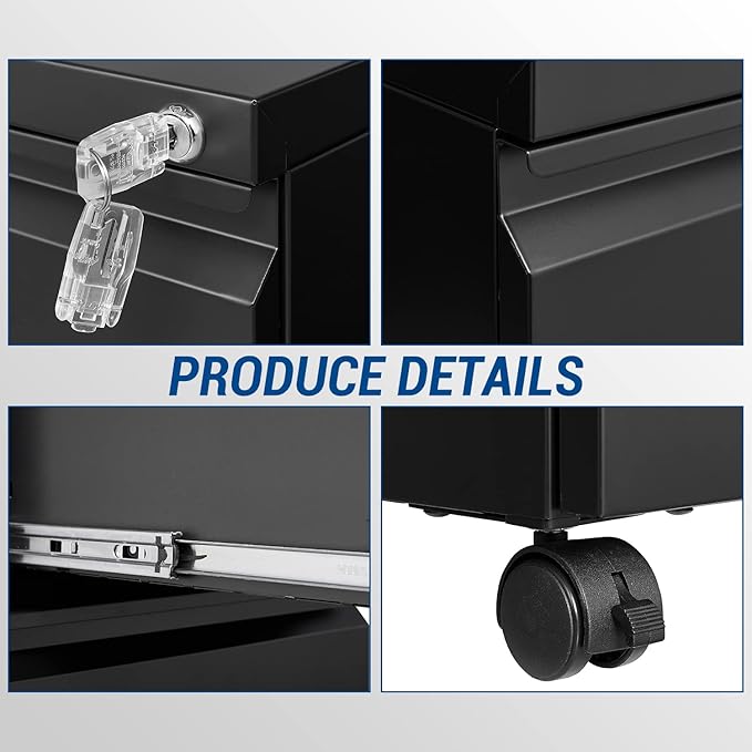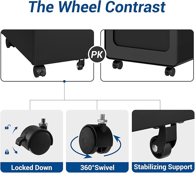 - CAN BE PLACED EVERYWHERE - Thanks to the compact design and five flexible wheels of this filing cabinet, you can easily putting it under the desk, next to the sofa, in the bedroom to using as a under desk file cabinet, a bedside tables etc.