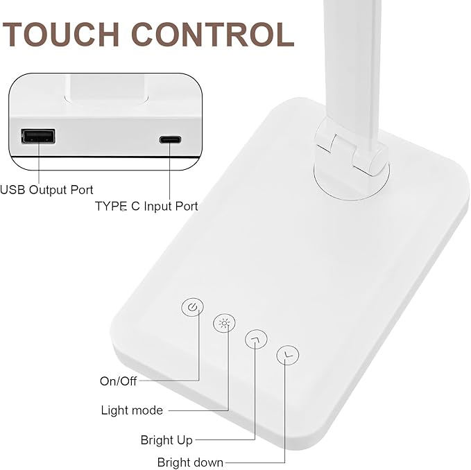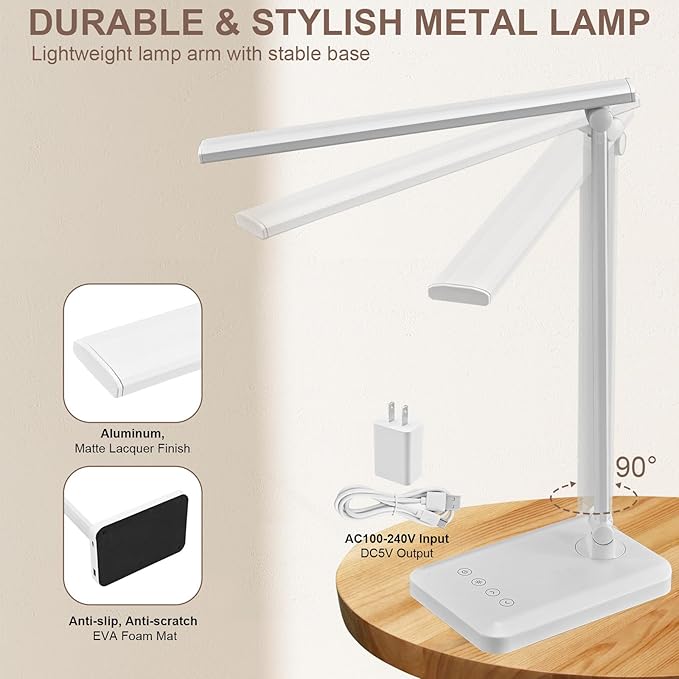 - 【Folding & Flexible with USB Charging Port】This Flexible office lamp with 90° rotating axis base for greater lighting range and flexibility can be folded for saving space and it can be rotated for perfect position you want. Table light is integrated with USB charging port , which makes it more easier and convenient for charging phone.
