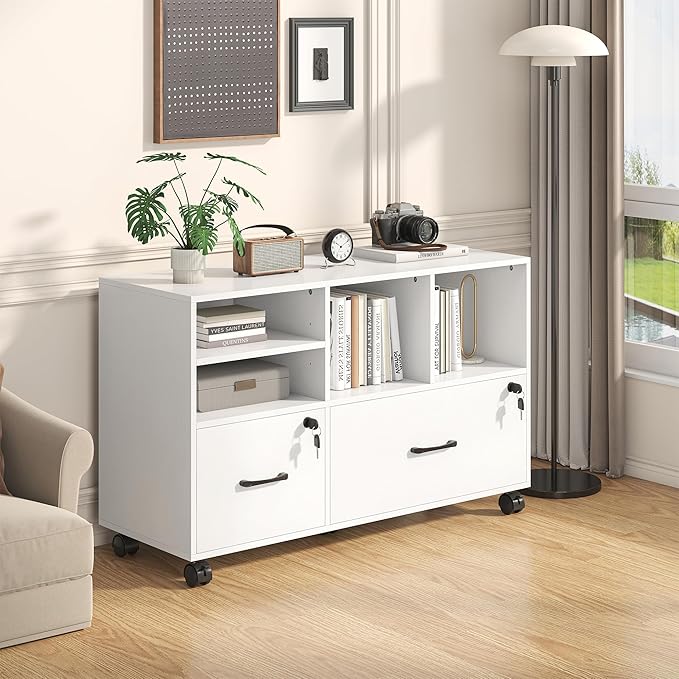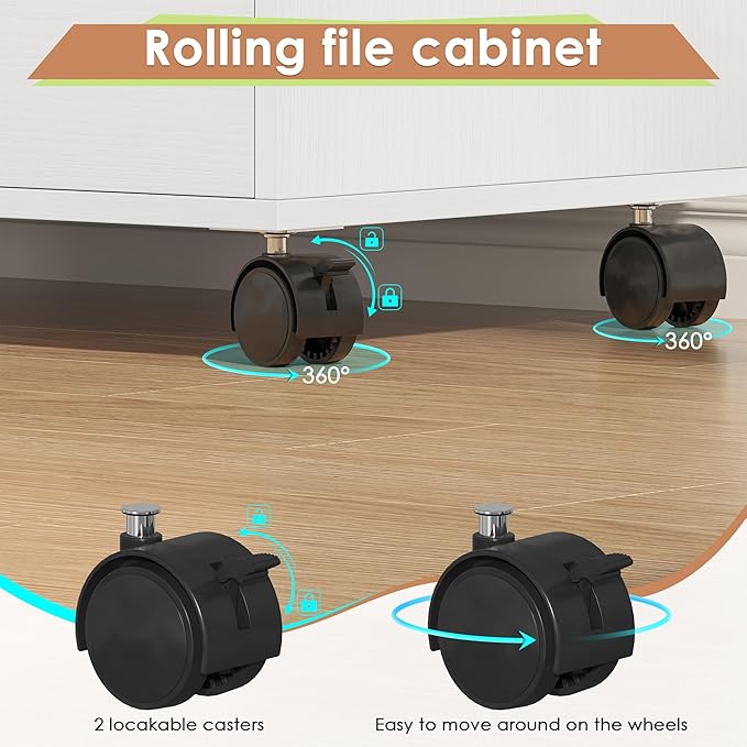 - 【Lockable & Movable】Both drawers of this filing cabinets for home office are equipped with locks so you can important documents. Plus, this lateral file cabinet is equipped with 2 lockable casters, which means you can move it wherever you like.