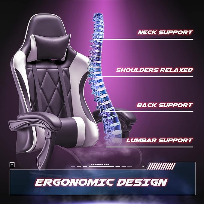 - High Quality: The white gaming chair, designed with ergonomic construction, featuring a BIFMA-certified metal base, is more sturdy and durable. Class 3 gas lift and upgraded mechanism improve the safety performance. Skin friendly PU leather and high density foam increase the comfort of seat. Weight capacity: 270lbs.
