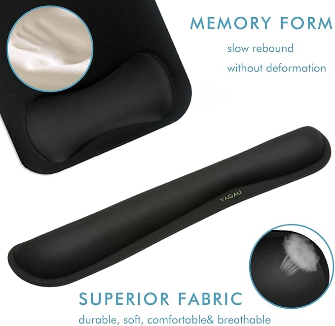 - 【Ergonomic Wrist Support】VAGAU keyboard wrist rest and mouse pad are specially designed to prevent wrist or hand injuries, comfortably support your hands and wrists, improving posture for long hours of typing and mouse use. Release the pressure on your elbows and shoulders.