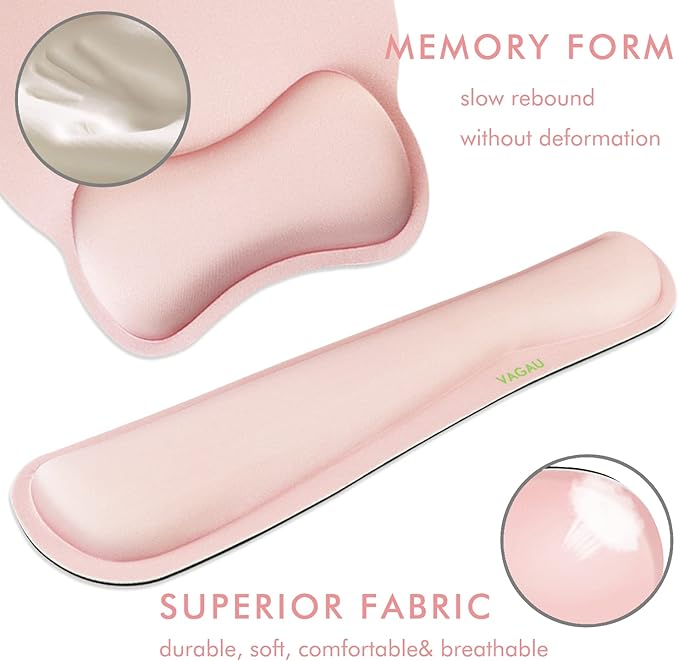 VAGAU Premium Keyboard Wrist Rest and Mouse Pad Wrist Support, Ergonomic Memory Foam Set for Office, Laptop, Mac, Computer and Gaming,Comfortable Typing &Wrist Pain Relief(Pink)
