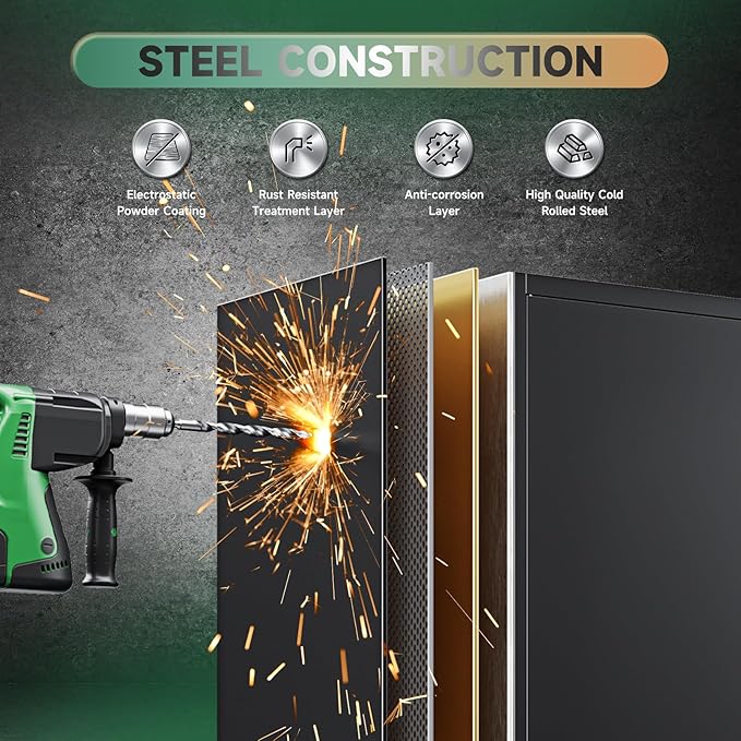 - Professional Design: Metal cabinet adopts an upgraded version of the three-point lock system, and the steel rods are thickened to provide higher security for your valuables and important items;anti-collision reinforcements, keeping quiet while protecting when you opening or closing the door;Adjustable feet can ensure the balance of the metal cabinet in various environments;pre-holes on the back, enable to be mounted to the wall