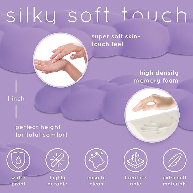 Qloud Cloud Wrist Rest Keyboard Wrist Rest for Computer Keyboard Pad, Cloud Keyboard Wrist Rest, Wrist Pad for Keyboard, Memory Foam, Non Slip Base, Comes with Mouse Pad - Lilac Purple
