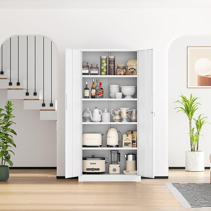 INTERGREAT Metal Storage Cabinet,71" Steel Lockable File Cabinet with Locking Doors and Adjustable Shelves,Locking Tool Cabinets for Office,Home,Garage,Gym,School (White)