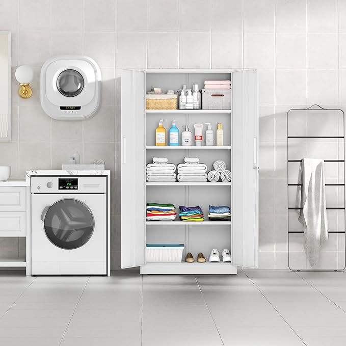 - 【large space design】16"D x 32"W x 71"H,our big cabinet maximum load capacity : 900 lbs.You can put anything you want to store in it, such as laundry detergent, soy milk maker, tool box, etc.Huge storage space can create a clean and comfortable living environment for you