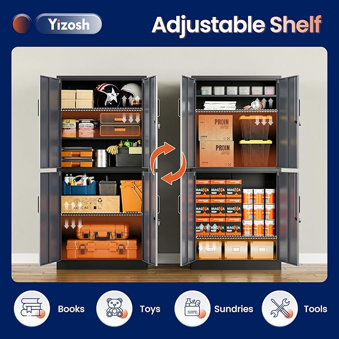 - 『PRACTICAL DESIGN』:Our tall metal cabinet equipped with lock and 2 adjustable shelves to provide adaptability and convenience. High-grade lock picking to secure valuables, two keys are included. Regardless of what your storage needs are, you have the ability to create a unique storage space to suit them.