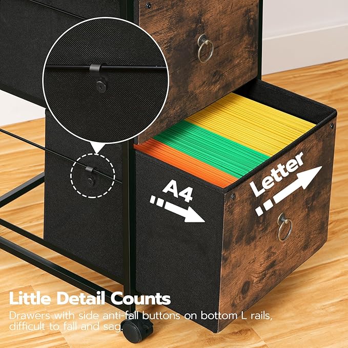 HOOBRO 2 Drawer Mobile File Cabinet, Rolling Printer Stand, Vertical Office Filing Cabinet for Home Office, A4/Letter Size, Nonwovens Drawer, Rustic Brown BF20WJ01